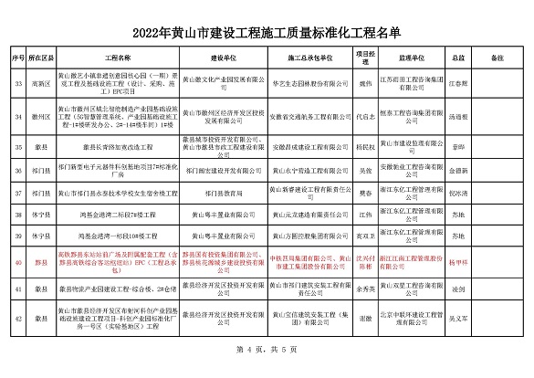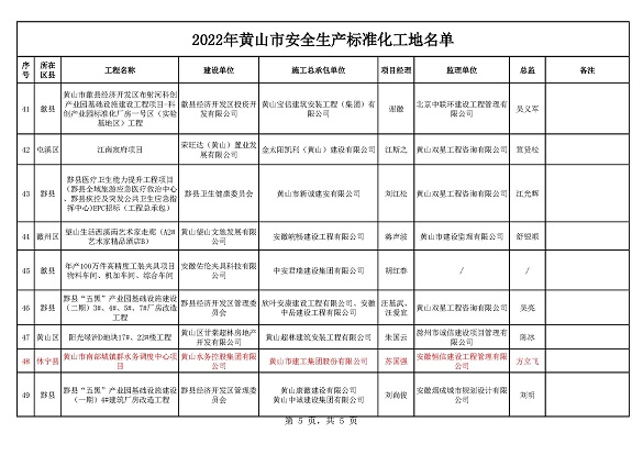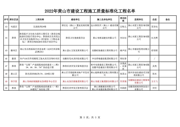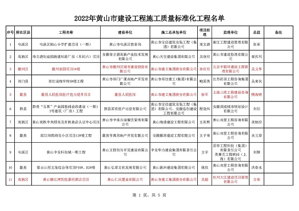 黃山市建工集團(tuán)股份有限公司承建的徽州家園項(xiàng)目、歙縣人民醫(yī)院醫(yī)療能力提升項(xiàng)目、黃山橫江灣凱悅酒店項(xiàng)目、高鐵黟縣東站站前廣場(chǎng)及附屬配套工程、黃山市南部城鎮(zhèn)群水務(wù)調(diào)度中心項(xiàng)目、黃山北海路公交綜合大樓工程榮獲2022年施工質(zhì)量標(biāo)準(zhǔn)化工程和安全生產(chǎn)標(biāo)準(zhǔn)化工地的殊榮。