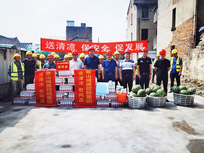 烈日炎炎,氣溫居高不下。為保障項目職工安全健康權(quán)益,確保項目安全生產(chǎn)平穩(wěn)推進,8月10日上午,黃山城投城建控股有限公司總經(jīng)理汪國文等一行赴寧國市河瀝文化街區(qū)EPC項目工地開展走訪調(diào)研暨“夏送清涼”慰問活動。黃山建工集團股份有限公司董事長項端陽、總經(jīng)理葉金發(fā)、副總經(jīng)理吳學(xué)武陪同調(diào)研慰問。